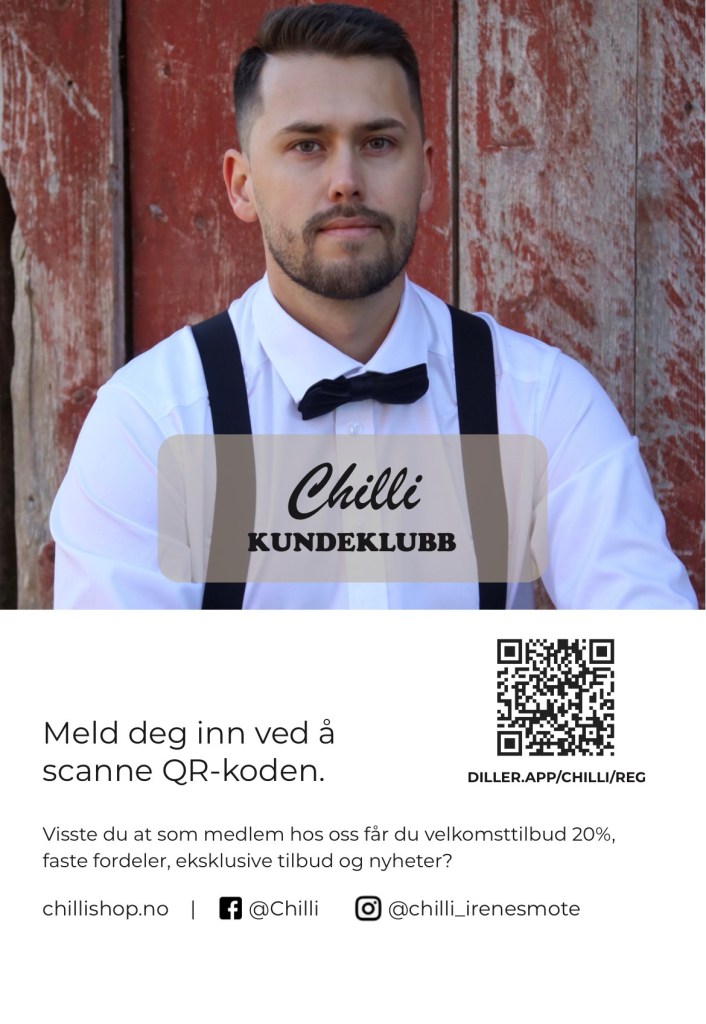 Velkommen til Chilli, her har vi klær til han og henne fra konfirmasjons alder. Vi har det du måtte trenge til konfirmanten av klær og tilbehør.